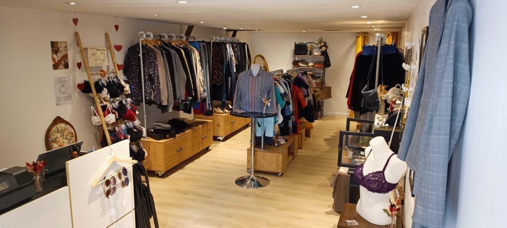 Au sein de la friperie, vous trouverez des vêtements pour femmes, hommes et enfants, des accessoires, des bijoux, des cosmétiques bio.