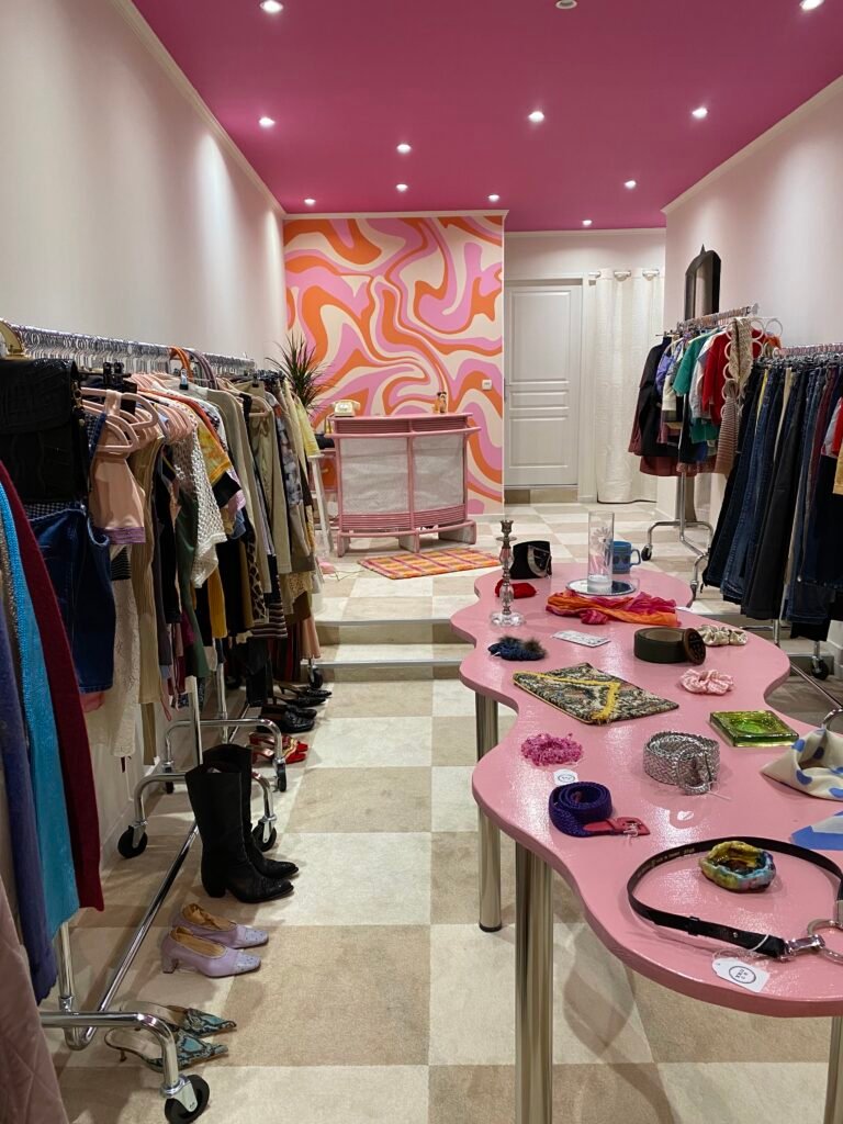 À cela s’ajoute une sélection de petite déco de seconde-main le tout dans une boutique chaleureuse et à paillettes.
